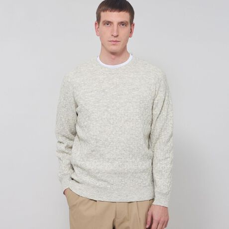 ややゆったりとしたサイズ感のクルーネックのプルオーバーニットです。バスケット編みで伸縮性があり、サイズ設定もややゆったりのためM、Lの2サイズ展開になります。