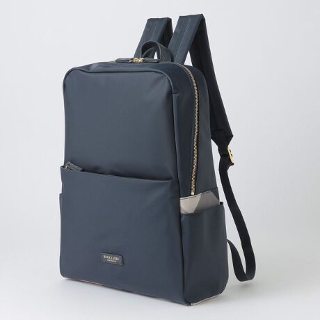 [型番:55109705__]◆収納力抜群のきれいめナイロンバックパック控えめな光沢感が上品なナイロン素材を使用したバックパックです。ラフになりがちなナイロンバックパックに、革やゴールド金具を程よくあしらいました。PCも入るサイズ感なので、ビジネスシーンにも活躍します。両サイドの外ポケットにはドリンクボトルも納まります。
