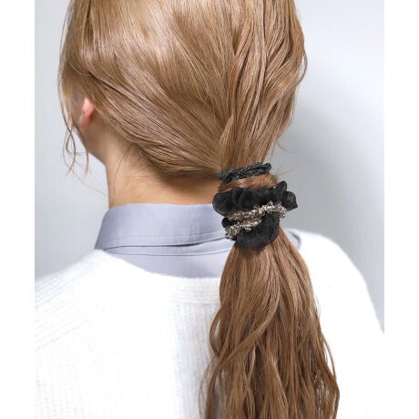 オーガンジーシュシュ×ビーズヘアゴム[3本セット]