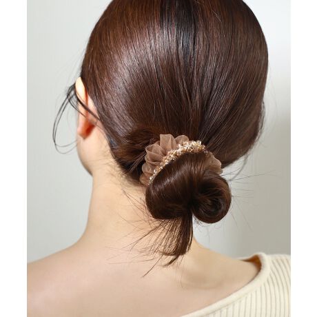 オーガンジーシュシュ×ビーズヘアゴム[3本セット]