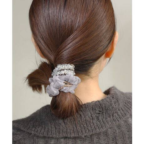 オーガンジーシュシュ×ビーズヘアゴム[3本セット]