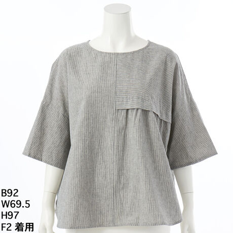 計算された切替デザイン: 胸元の切り替えから広がる繊細なギャザーが、ふんわりとした女性らしいシルエットを作ります。