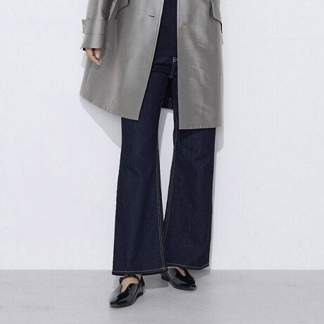 膝下から広がるフレアシルエットと深めの股上のハイウエスト設計で、スタイルアップが期待できます。