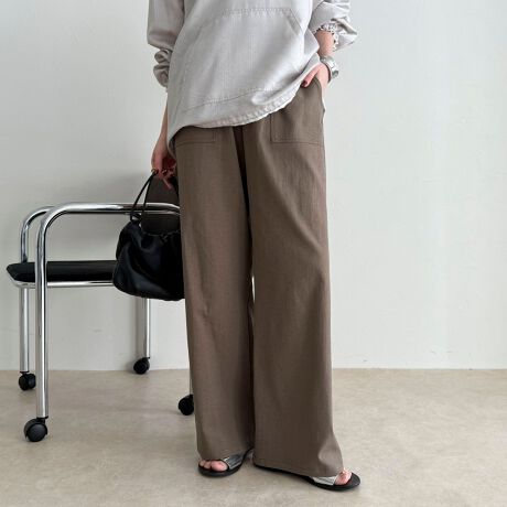 ・ドライタッチなオックス素材を使用した、セミワイドシルエットのイージーパンツ