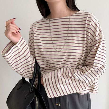 ・ボーダー柄にさりげなく効かせたハートステッチが大人の遊び心を添えるルーズロンT