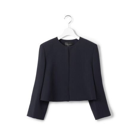 センターバックにタックを入れ、ややボリュームをもたせたノーカラージャケット。ドレスと合わせてバランスのよい、広がりすぎない分量感とレングスにこだわり、体のラインを程よくカバーしながら、きちんと見えするすっきりとしたデザインです。袖口にさりげなくスリットを入れることで、袖デザインのあるドレスとも相性がよく、着心地よく仕立てています。華やかなシーンにはもちろん、お仕事、学校行事などにも着回しの効くデザインです。シックな魅力を引き立てるブラック系(#005)と清楚な雰囲気の濃いめのネイビー系(#075)に加えて、肌馴染みよく柔和で優雅な印象のベージュ(#033)の3色展開です。