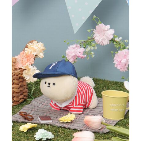 ネイビーの6パネルキャップは「PLUFFY」の頭文字をメジャーリーグ風にアレンジした遊び心が魅力。