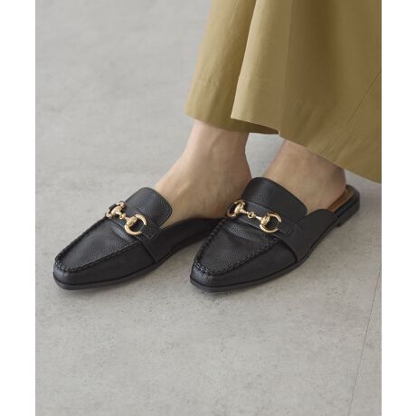 ローファーデザインのきれいめな印象と、ミュールならではの軽快さを兼ね備えています。足を入れるだけで簡単に履けるため、時間のない朝や移動の多い日にも重宝します。ビットのアクセントが足元を引き締め、シンプルながらも程よい存在感を演出します。フラット感覚で履ける安定した履き心地なので、デイリー使いにも安心です。デニムやきれいめパンツはもちろん、フェミニンなスカートとも相性がよく、コーディネートの幅が広がります。かかとが見えるデザインが軽やかさをプラスし、季節を問わず取り入れやすいのも魅力です。気負わず使えて、自然とおしゃれに見せてくれる頼れる一足です。