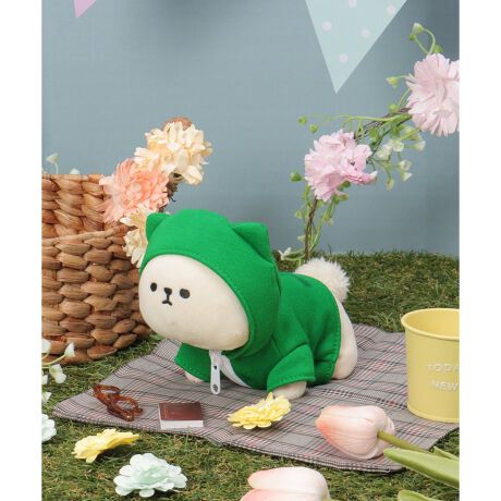春に映えるグリーンカラーのジップパーカーをモチーフにした、カレッジ風デザインです。