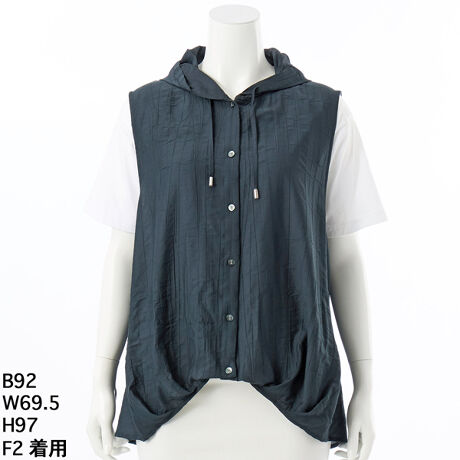 さらりと軽いワッシャー素材を使用した、表情豊かなフード付きジレが登場しました。