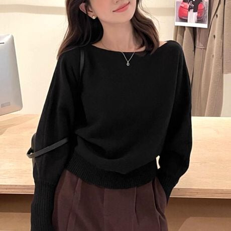 肩をきれいに見せるオフショルダーデザインに、ゆったりとしたシルエットを掛け合わせたニットトップス。
