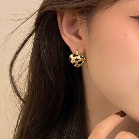 立体感のあるハートモチーフに、レトロ調のブラック柄を落とし込んだ存在感ピアス。