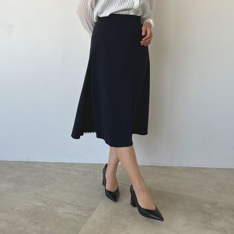 自然な揺らめきを生み出すサイドのプリーツ切り替えが魅力的なスカート。動くたびになびくシルエットは優美で洗練された女性らしさを演出します。膝が隠れる程度の上品な丈感がポイント。とろみのあるさらりとした質感で、心地よい着心地を提供します。ふんわりと立体感のあるブラウスや、きれいめなシャツなどをタックインしたコーディネートがおすすめです。
