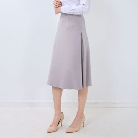 自然な揺らめきを生み出すサイドのプリーツ切り替えが魅力的なスカート。動くたびになびくシルエットは優美で洗練された女性らしさを演出します。膝が隠れる程度の上品な丈感がポイント。とろみのあるさらりとした質感で、心地よい着心地を提供します。ふんわりと立体感のあるブラウスや、きれいめなシャツなどをタックインしたコーディネートがおすすめです。