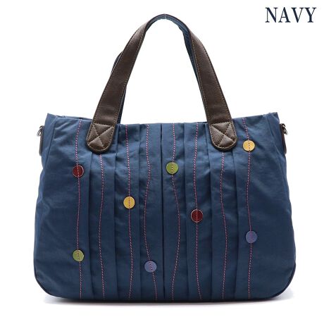 プリーツ加工にカラフルなドットのモチーフが印象的なハンドバッグ!