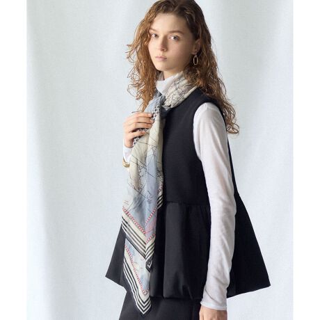 広大な世界地図をモチーフにした、23区オリジナルのワールドマップ柄が描かれた大判ストールです。繊細なタッチで描かれた大陸や海のライン、そして外側の印象的な縁取りが、一枚の絵画のような美しさを放ちます。サッと首回りに巻くだけでシンプルなTシャツやニットのスタイリングも、知的な華やかさと洗練された雰囲気をプラス。コットンとシルクをブレンドした日本製の上質素材で、ふんわりと柔らかく軽やかな着け心地が魅力です。通気性も良く、季節の変わり目から肌寒い季節まで、快適にお使いいただけます。日常のお出かけはもちろん旅行先にも持っていきたい万能なアイテムです。首元に巻いたり、肩から羽織ったりと、アレンジ次第で様々な表情をお楽しみいただけます。 カラーは、落ち着いたブルーグレーを基調に、赤のラインとシックなブラックの縁取りが知的な印象のモノトーン(#505)と、明るいスカイブルーに暖かみのあるベージュの陸地、鮮やかな赤のラインの縁取りが華やかなマルチカラー(#520)の2色展開です。