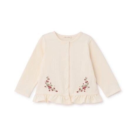 繊細な野イチゴの刺しゅうをあしらったカーディガンです。