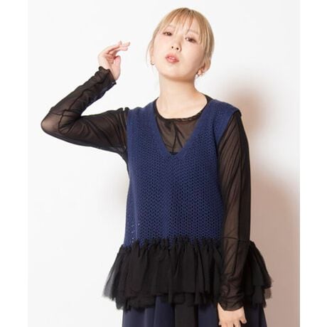 フリンジヘムメッシュニットベスト