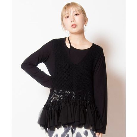 [型番:501010-461K]スポーティーなメッシュベストに、デコラティブなフリンジが小気味よいアクセント。いつものコーデもブラッシュアップする、レイヤードスタイルの心強い味方。===========================透け感: あり伸縮性: あり光沢感: なし裏地: なし素材について: シャリ感のある、ドライな肌触り===========================