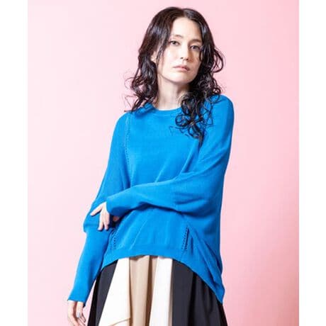 [型番:501010-462K]ラフな着心地ながら着痩せ効果も狙えるドルマンニットは、パンチングラインが抜け感をプラス。ベーシックカラーに加え、明度の高いビビッドカラーも春気分を盛り上げる。===========================透け感: あり伸縮性: あり光沢感: なし裏地: なし素材について: シャリ感のあるドライな肌触り、透けのある編地===========================