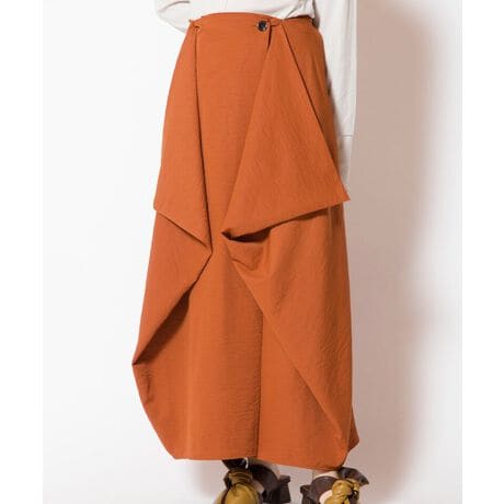 [型番:501010-467S]コクーンシルエットに、幾何学的なフロントドレープをあしらったモードなスカート。歩くたびに新鮮なフォルムを生み出し、コーディネートの主役を担う一枚。===========================透け感: なし伸縮性: なし光沢感: ややあり裏地: なし素材について: 自然なシボ感のある、柔らかな素材===========================
