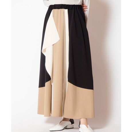 [型番:501006-468S]OSMOSISらしい配色デザインに、さりげないカスケードがエッジを効かせるスカート。モードと華やかさを両立させるリュクスなデザインで、コーディネートをクラスアップ。===========================透け感: ほぼなし(IVORY部分)伸縮性: なし光沢感: なし裏地: なし素材について: 落ち感のある、シワになりにくい軽い素材===========================