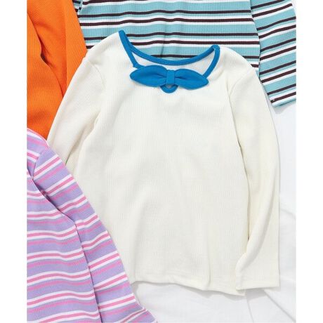apres les cours(アプレレクール)の長袖Tシャツ「【リンク】前後2WAYリボンリブTシャツ」は、ナチュラルなスタイルにさりげなくデザインをプラスしたおしゃれアイテム*
