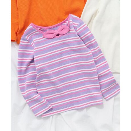 apres les cours(アプレレクール)の長袖Tシャツ「【リンク】前後2WAYリボンリブTシャツ」は、ナチュラルなスタイルにさりげなくデザインをプラスしたおしゃれアイテム*
