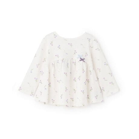 ペプラム調の裾が女の子らしさを引き立てるTシャツです。胸元にプラスした小さなリボンが可愛いアクセントになっています。後ろの首元が少し広めなので、頭を通しやすく毎日のお着替えがスムーズです。生地にはオーガニックコットンを使用。普段のお出かけから通園・通学まで、幅広く活躍します。色違いで複数枚持っておくのもおすすめです。内側にお名前を記入できるタグつき。