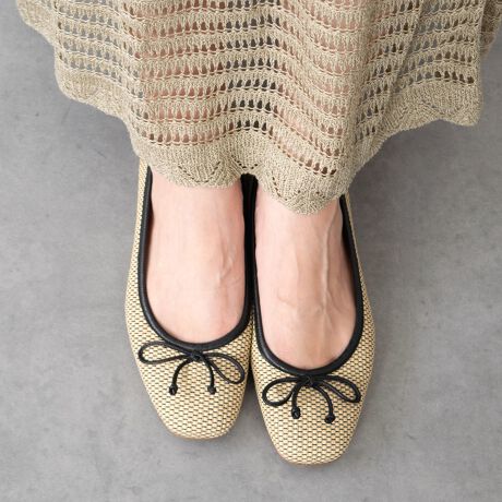 スクエアトウのサケットラフィアバレエシューズが「ファビオルスコーニ」から登場しました。