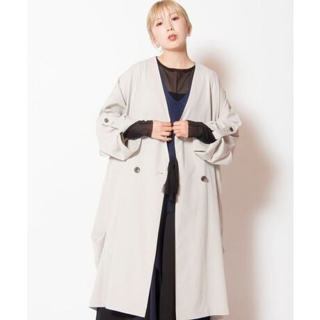 [型番:501006-472C]クラス感あるノーカラーコートは、ラフな着心地で肩の力を抜いて。アジャストスリーブでシルエットを整え、よりすっきりとした佇まいに。===========================透け感: なし伸縮性: なし光沢感: なし裏地: なし素材について: ややとろみ感のある、柔らかい風合い===========================
