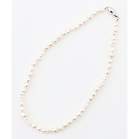 ■デザイン大小形の異なるパールを組み合わせたネックレス。フロント部分のメタルパーツがワンポイントになっています。メタルパーツはマグネット仕様で、着脱が簡単でスムーズなのも魅力。前後2WAYでお使いいただけます。