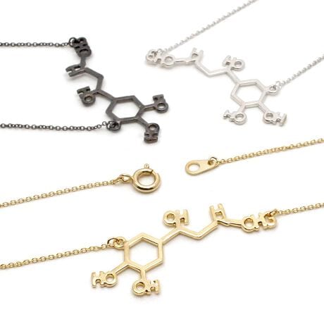 [型番:N194h-10Gn]アドレナリンの構造式をアクセサリーにしました。幾何学模様のようにも見える構造式がオシャレで、首元のアクセントになってくれます。