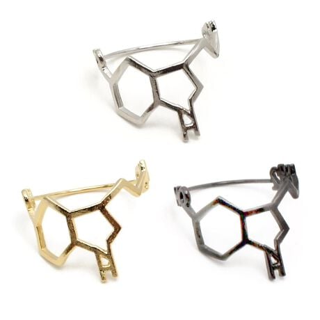 [型番:R194h-9Gn]幸せホルモンとも呼ばれる、セロトニンの構造式がアクセサリーになりました。指に沿うようにデザインされた構造式が、手元に個性的なアクセントをプラスしてくれます。