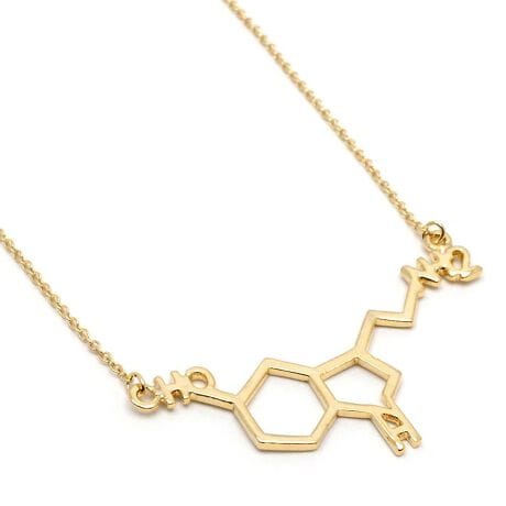 [型番:N194h-11Gn]幸せホルモンとも呼ばれる、セロトニンの構造式がアクセサリーになりました。個性的なデザインで、コーディネートのアクセントになってくれます。