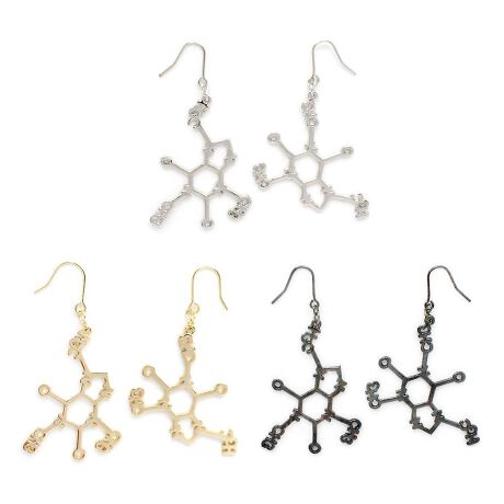 [型番:P198h-186Gn]眠気覚ましとして知られているカフェインの構造式をアクセサリーにしました。躍動的で存在感があり、遊び心溢れるデザインです。
