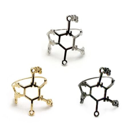 [型番:R198h-22Gn]眠気覚ましとして知られているカフェインの構造式をアクセサリーにしました。幾何学模様のような形で遊び心が感じられるデザインです。