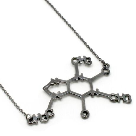 [型番:N198h-22Gn]眠気覚ましとして知られているカフェインの構造式をアクセサリーにしました。幾何学模様のような形で遊び心が感じられるデザインです。