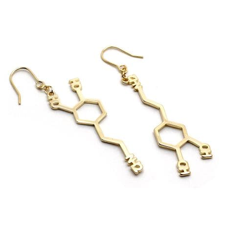 [型番:P198h-185Gn]別名「生きる意欲を作るホルモン」と言われるドーパミンの構造式をアクセサリーにしました。ユニークながらもスッキリとした形でスタイリッシュさを演出してくれます。