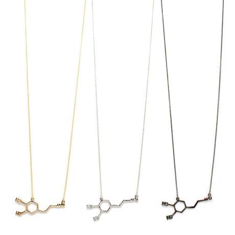 意欲や運動に関する神経伝達物質?ドーパミンの構造式をアクセサリーにしました。ユニークながらもスッキリとした形でスタイリッシュな雰囲気を演出してくれます。