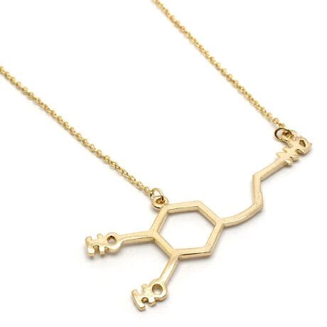[型番:N198h-21Gn]意欲や運動に関する神経伝達物質?ドーパミンの構造式をアクセサリーにしました。ユニークながらもスッキリとした形でスタイリッシュな雰囲気を演出してくれます。