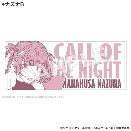TVアニメ「よふかしのうた」より、2種類のナズナのビジュアルが、シンプルなモノトーンデザインのコットンフェイスタオルになって登場。