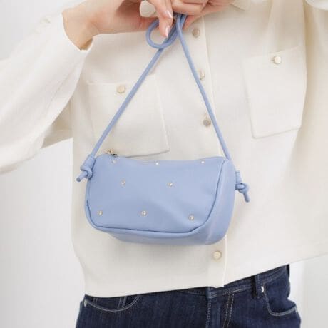 フロントにあしらわれたキラキラスタッズが、さりげない華やかさを演出し、コーディネートのアクセントになります。