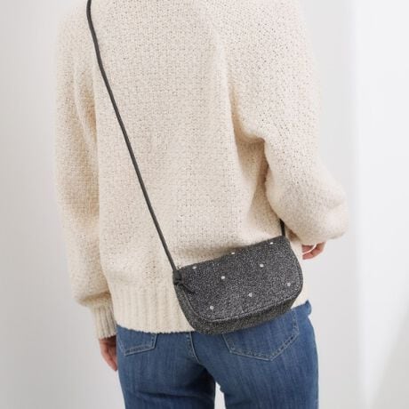 フロントにあしらわれたキラキラスタッズが、さりげない華やかさを演出し、コーディネートのアクセントになります。