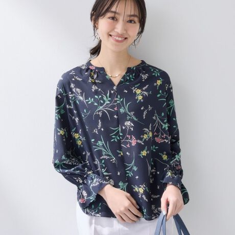 華やかなプリント柄は、映えるデザインブラウスとしてスカート・パンツを問わずご着用いただけます。
