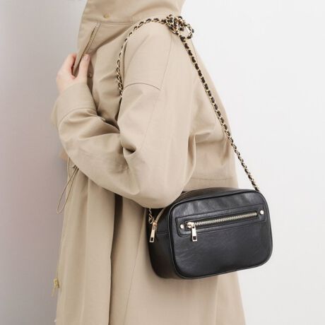 上品なチェーンショルダーが目を惹く、コンパクトながら長財布もすっきり収まるショルダーバッグ。