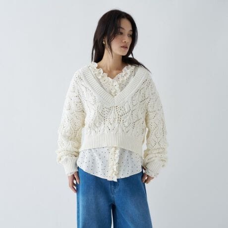 ・ざっくりとした透かし編みが、抜け感と清涼感を演出する大人可愛いニットプルオーバー。
