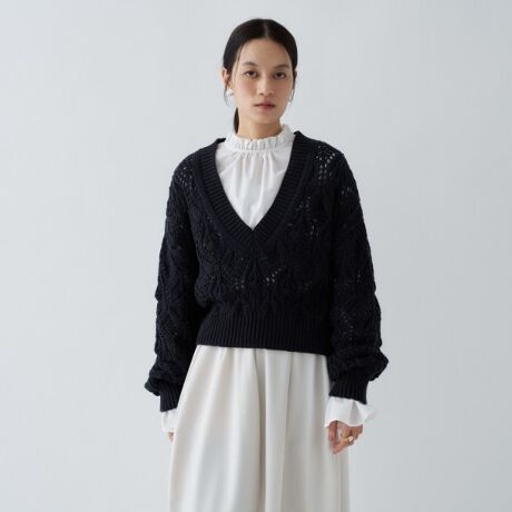 ・ざっくりとした透かし編みが、抜け感と清涼感を演出する大人可愛いニットプルオーバー。