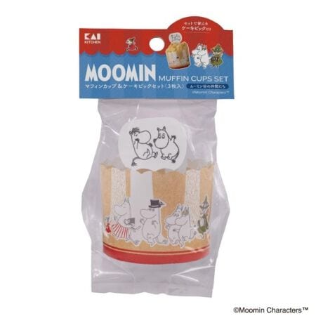 カップには森をお散歩するムーミンたち、ピックにはマフィンの上で飛び跳ねるムーミンとスノークのおじょうさんがデザインされています。