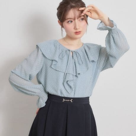 たっぷりとしたラッフルカラーがかわいいブラウスです